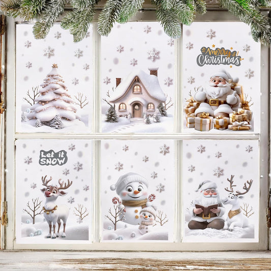 9 Sheets Double-Sided Christmas Window Stickers – Reusable Xmas Window Clings with Santa, Snowman & Snowflakes for Home, Shop & Holiday Decorations
