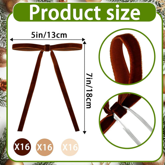 48PCS Christmas Velvet Bows – Vintage Style Ribbon Bows (5x7 Inch) for Xmas Tree, Wreath, Garland, Gift Wrapping & Holiday Home Decorations