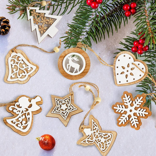 Wooden Christmas Tree Decorations – Hanging Rustic Ornaments for Tree, Wall & Holiday Party Décor, Reusable Wooden Pendant Set