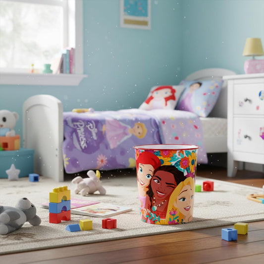 Kids Waste Paper Bin 7L – Disney Princess Design Plastic Trash Can for Bedroom, Study Desk & Playroom, Lightweight Open Top Dustbin