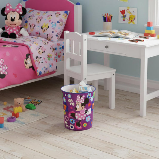 Kids Waste Paper Bin 7L – Minnie Mouse Design Plastic Trash Can for Bedroom, Study Desk & Playroom, Lightweight Open Top Dustbin