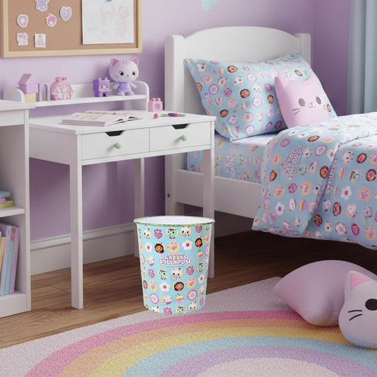 Kids Waste Paper Bin 7L – Gabby’s Dollhouse Design Plastic Trash Can for Bedroom, Study Desk & Playroom, Lightweight Open Top Dustbin